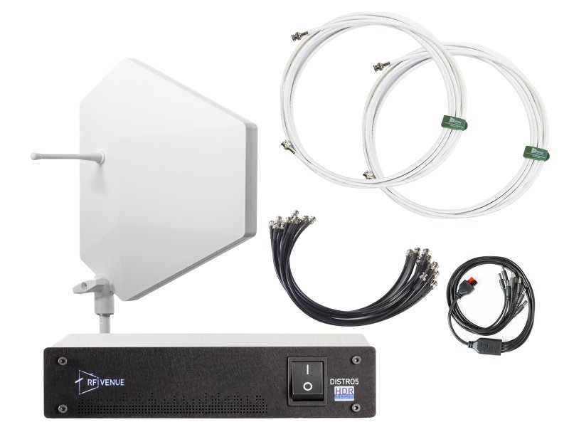 PRO TIP: This bundle is the ideal for touring and permanent outdoor installation. If your project involves an indoor wallmount installation where aesthetics are the priority, check out the RF Venue Diversity Architectural Antenna DISTRO5 Bundle.
