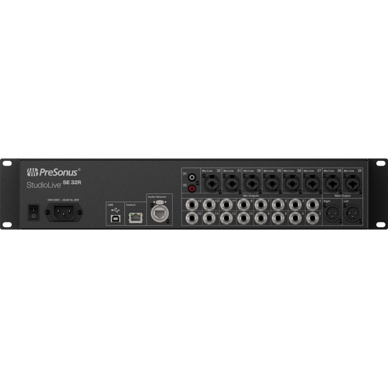 The StudioLive 32R is a 40-channel digital mixer in two rackspaces. Use it standalone with Universal Control software, pair it with StudioLive Series III consoles as a stage box or monitor mixer, or connect with EarMix 16M personal mixers. Plug into your studio computer for a bidirectional 128-channel (64x64) USB audio interface with vintage-modeled dynamics and EQ plug-ins on every input and bus.